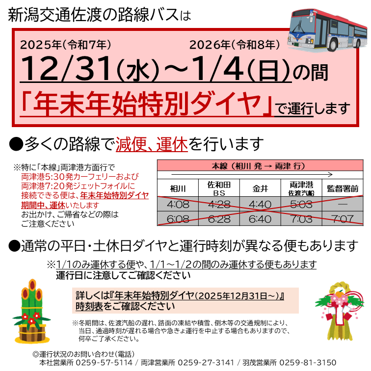 年末年始(2025年12月31日(水)~2026年1月4日(日))の路線バスは『年末年始特別ダイヤ』で運行します。